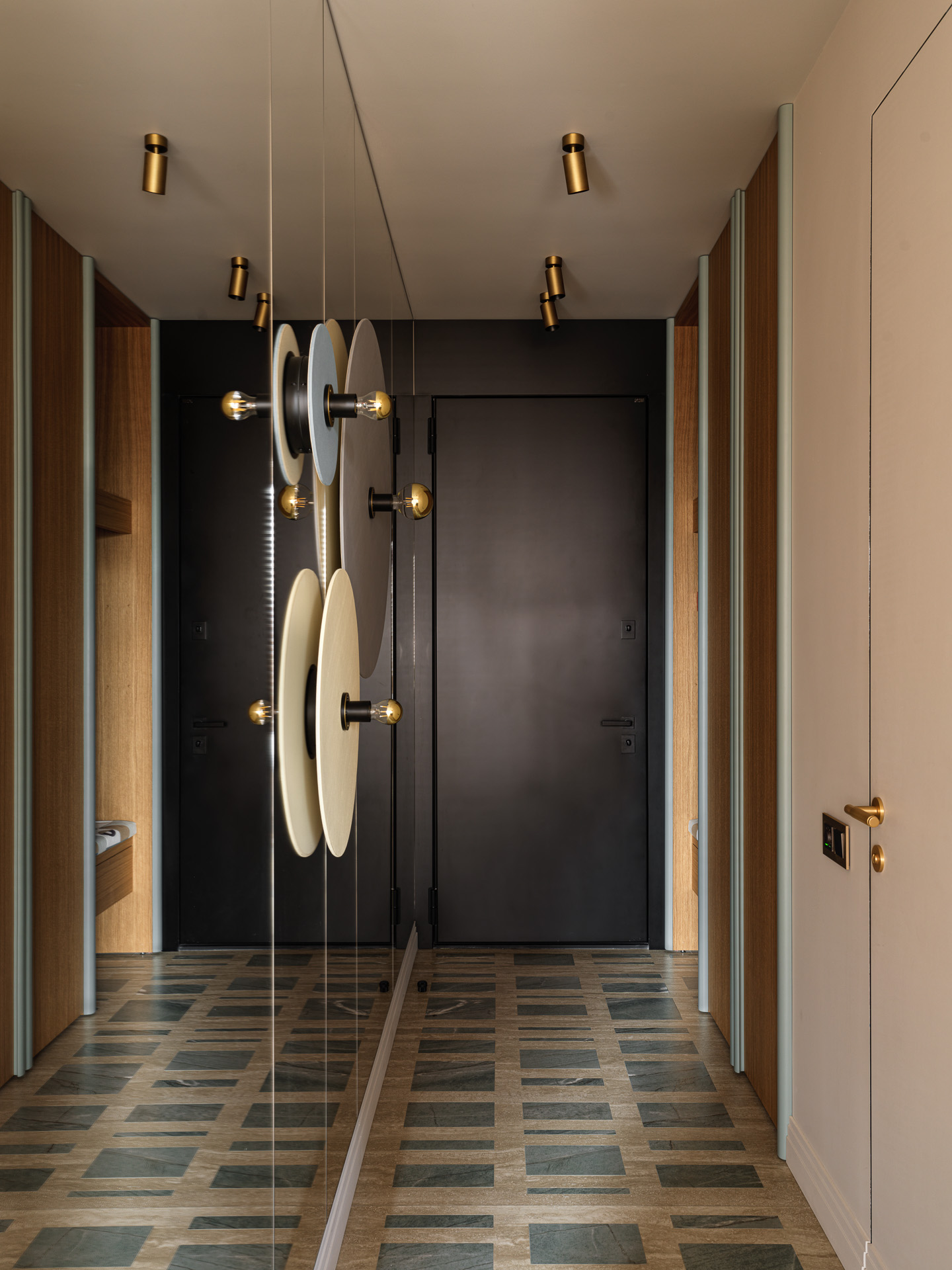 Особенностью проекта стало использование в керамогранитных модулях плитки разной толщины и формата. Это обстоятельство потребовало предельной точности и аккуратности при установке этих изделий.